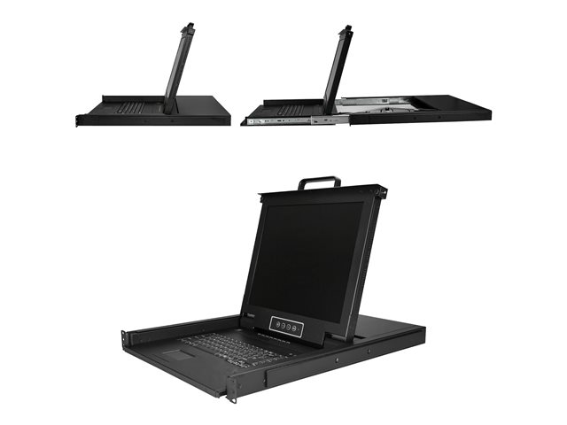 StarTech.com 8-ports rackmonterad KVM-konsol med 1,8 m kablar - Integrerad KVM-switch med 17-tums LCD-skärm - 1U LCD KVM-låda - OSD KVM - Hållbar 50 000 MTBF - USB + VGA-support - KVM-konsol med omkopplare för tangentbord/video/mus - 8 portar - USB - 17" - kan monteras i rack - 1280 x 1024 @ 60 Hz - 250 cd/m² - 1000:1 - 5 ms - VGA - svart - 1U RKCONS1708K