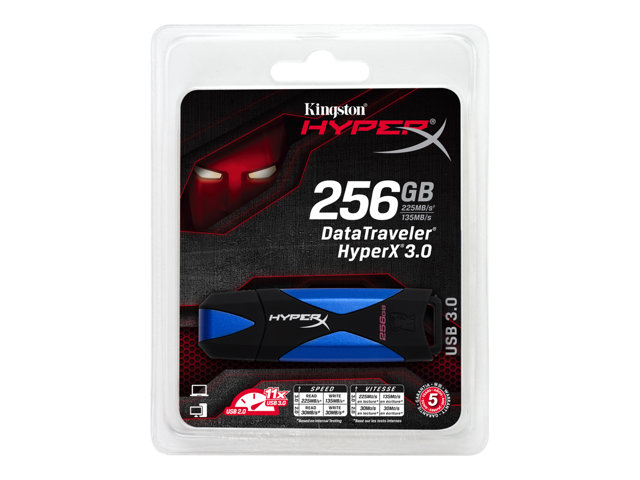 Featuring a high-speed 8-channel architecture that provides USB 3.0 data transfer speed, DataTraveler HyperX 3.0 is the perfect solution for expanding a notebook's storage and for quickly storing, transferring and backing up any digital lifestyle. Users will save time associated with opening and transferring large files and applications between devices. They will also experience less wait time, even when working with data-heavy content.