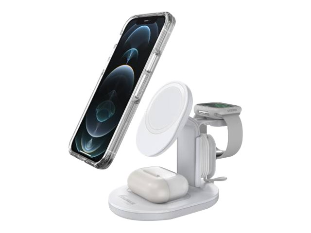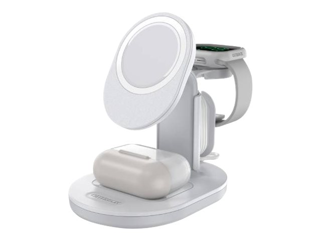 OtterBox - Trådlöst laddställ - 3-i-1 - lucid dreamer, vit, silver - för Apple iPhone 12, 12 mini, 12 Pro, 12 Pro Max, 13, 13 mini, 13 Pro, 13 Pro Max