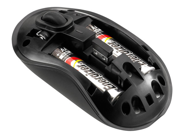 The low power indicator light will provide you with an early warning for when the batteries need changing. The mouse also comes with a micro USB receiver which is small enough to leave permanently plugged into your computer or using the built-in Stow-N-Go technology the USB receiver can be easily stored away into the mouse itself.