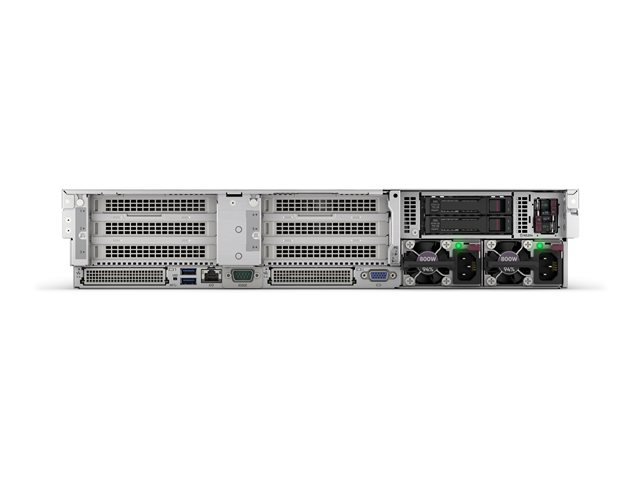 | Gränssnitt | 1 x HPE iLO (1 på framsidan) (service port) 5 x USB 3.2 Gen 1 (1 fram, 2 bak, 2 interna) 1 x VGA |