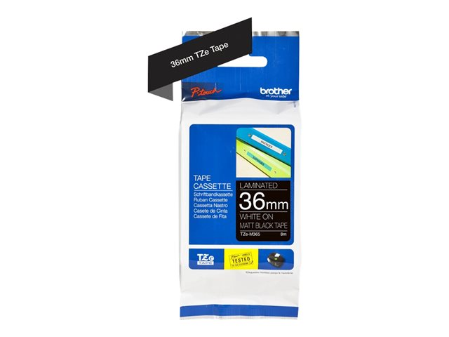 Brother TZe-M365 - Matt - lim - vitt tryck på mattsvart - Rulle 3,6 cm x 8 m) 1 kassett(er) bandlaminat - för P-Touch PT-530, PT-9200DX, PT-9200PC